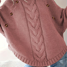 Damen Oversized Strickpullover mit Hochkragen und dekorativen Knopfdetails Stilzeits