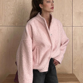 Damen-Pelzjacke Arvid: lässig, rosa, mit Stehkragen