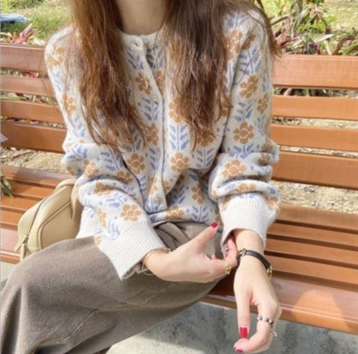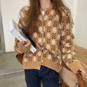 Damen Strickjacke mit floralem Muster und Knopfdetail Stilzeits