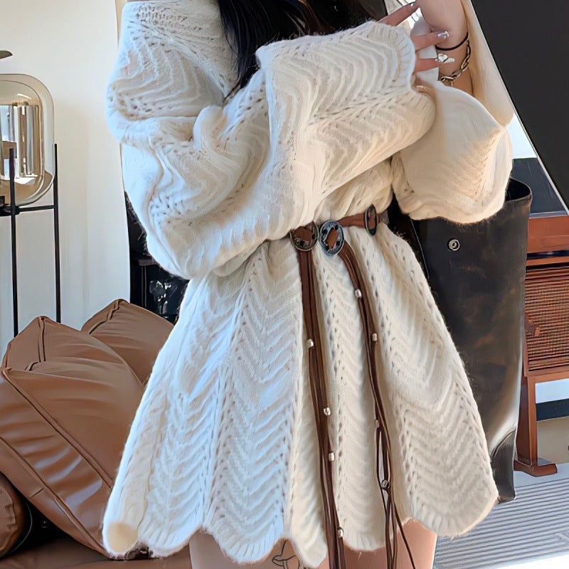 Damen Strickjacke mit innovativem Zopfmuster und elastischem Taillengürtel Stilzeits