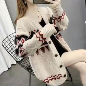 Damen Strickjacke mit modernem Zopf- und geometrischem Muster Stilzeits