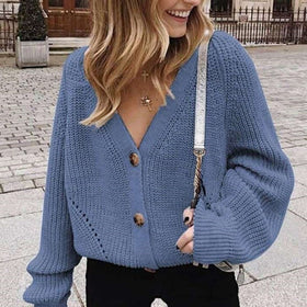 Damen Strickjacke mit tiefem V-Ausschnitt und Knöpfen Stilzeits