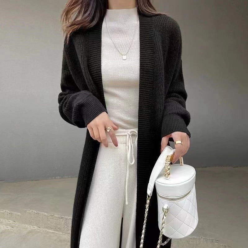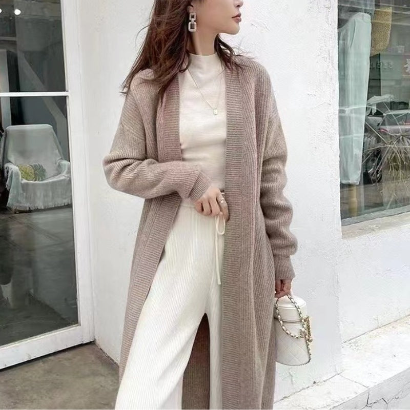 Damen Strickmantel mit offener Front und langen Ärmeln Stilzeits