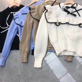 - Design: Ausgefallene Rüschen entlang des Ausschnitts und der Ärmel verleihen dem Pullover eine verspielte Note.