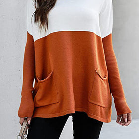 Damen Strickpullover mit großen Fronttaschen und kontrastiertem Design Stilzeits
