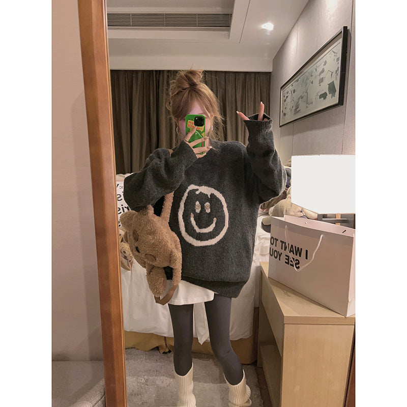 Damen Strickpullover mit lässigem Smile-Motiv und komfortabler Passform Stilzeits