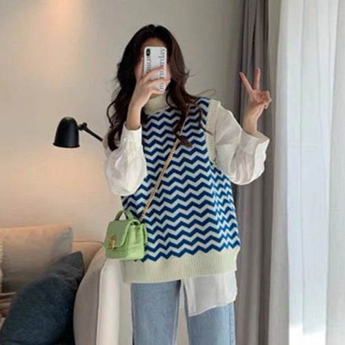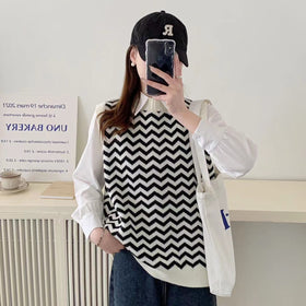 Damen Strickpullover mit Zickzackmuster und elegantem Kragen Stilzeits