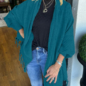 Damen vielseitiger Poncho mit Fransen Stilzeits