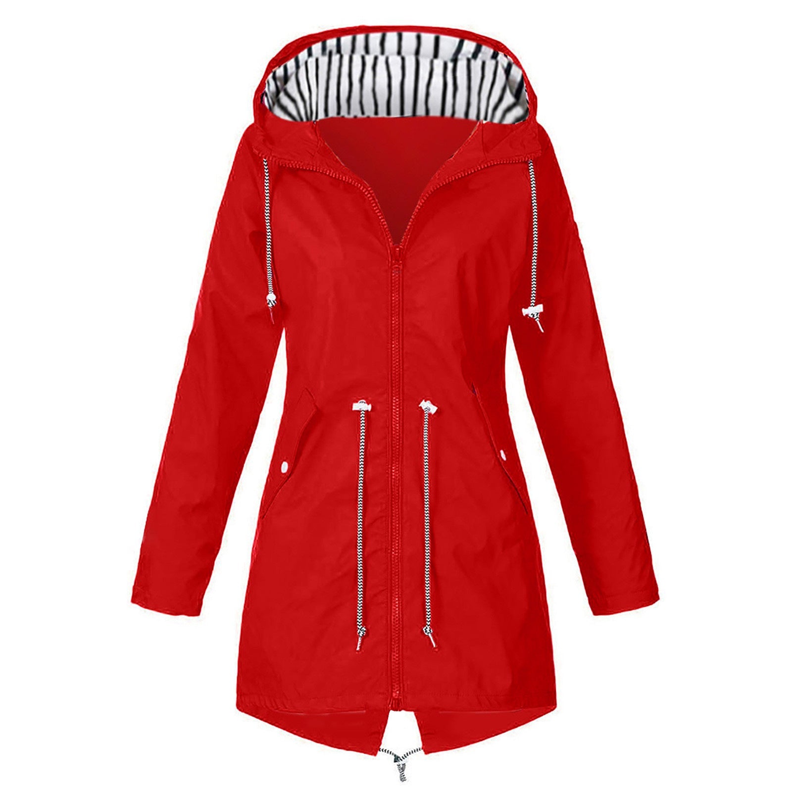 Damen wasserabweisende Freizeitjacke mit verstellbarem Kapuzenkragen und funktionalen Taschen Stilzeits