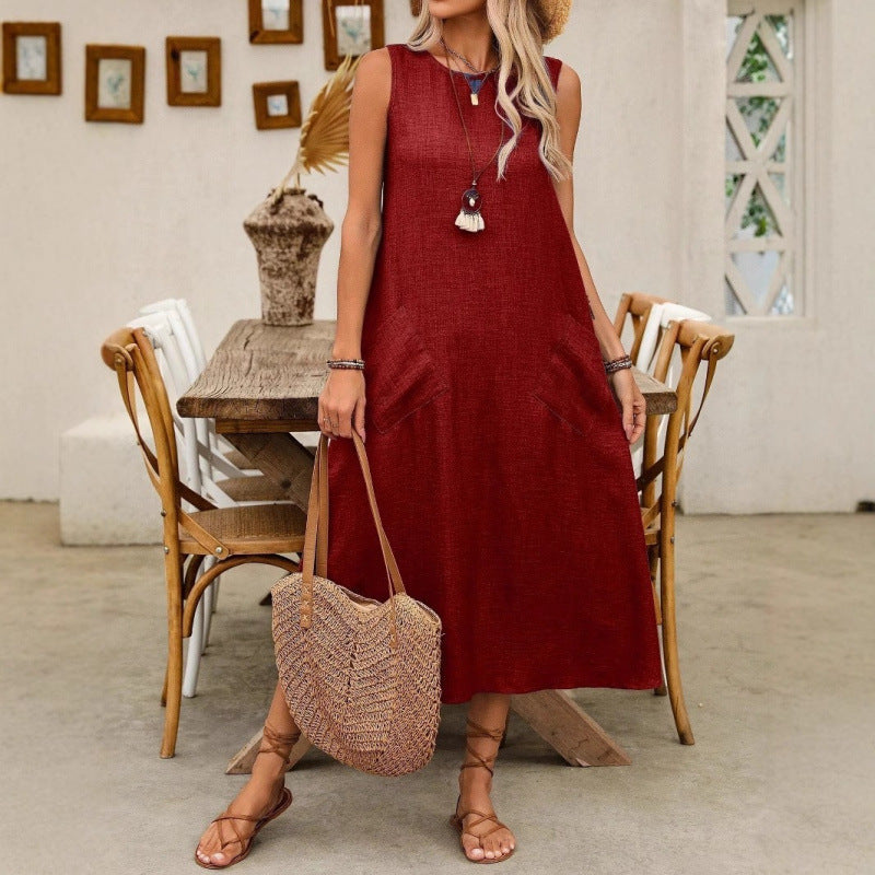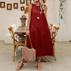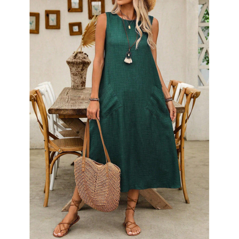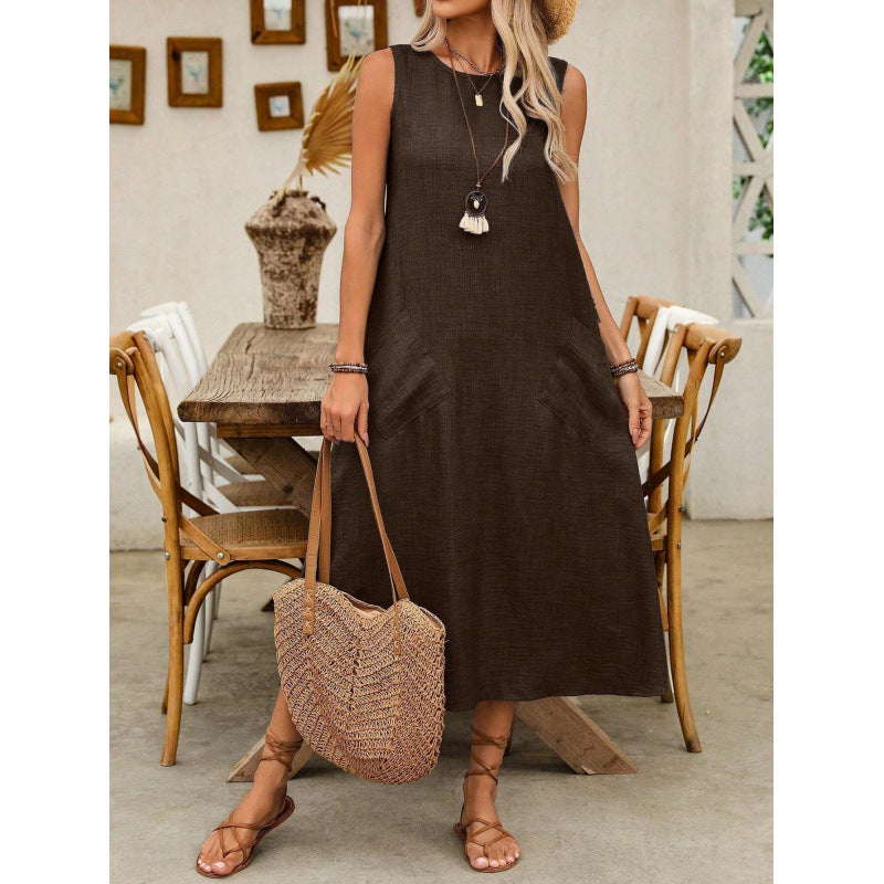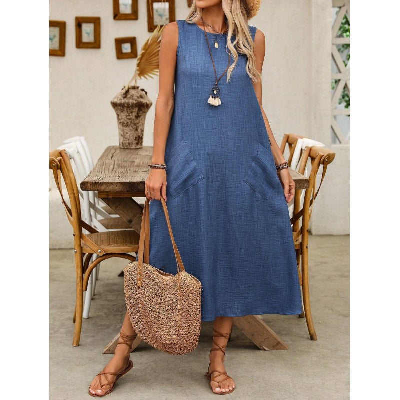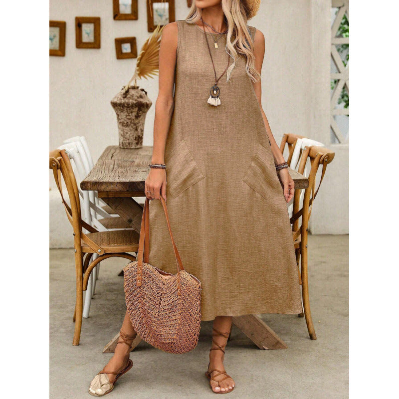 Einfarbiges, ärmelloses Rundhalskleid von Fudus