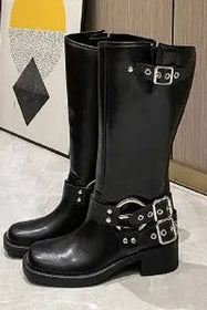 Entdecken Sie Damen Stiefel, die Komfort und Stil vereinen! Diese kniehohen Stiefel mit Gürtelschnallen und Retro-Look sind modisch und praktisch. Sie ziehen garantiert Blicke auf sich, egal ob in der Stadt oder im Café.