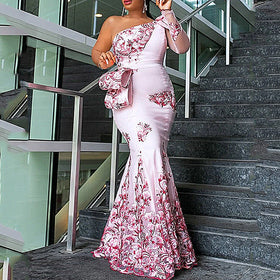 Elegantes langes Fudus-Kleid mit weitem Saum