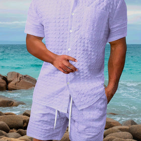 Dieses moderne Shirt-Shorts-Set vereint zeitloses Design mit maximalem Komfort. Leichtes, atmungsaktives Material hält Sie kühl. Moderner Schnitt für perfekte Passform. Das Shirt ist minimalistisch; die Shorts haben elastischen Bund und Taschen. Ideal für Strand, Stadt oder entspannte Abende – müheloser Stil. Ein Sommer-Essential: elegant und funktional.