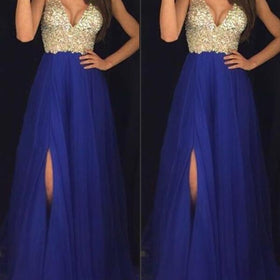 Fließendes Fudus Maxikleid mit seitlichem Pailletten-Schlitz und V-Ausschnitt