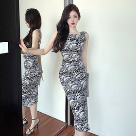 Fudus bedrucktes Bodycon-Kleid mit Rückenmotiv