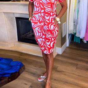 Fudus Damen-Kurzarmkleid mit V-Ausschnitt und Muster