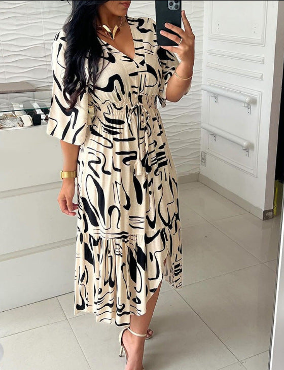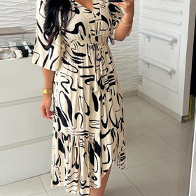 Fudus Faltenkleid mit 3/4-Ärmeln und Rüschen-Detail