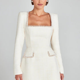 Fudus Kleid mit Perlen, U-Boot-Ausschnitt und langen Ärmeln