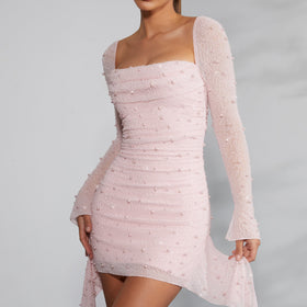 Fudus Kleid mit Perlen und langen Ärmeln