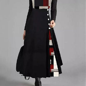 Professioneller, einteiliger Maxirock mit Rundhalsausschnitt und langen Ärmeln. Druck.