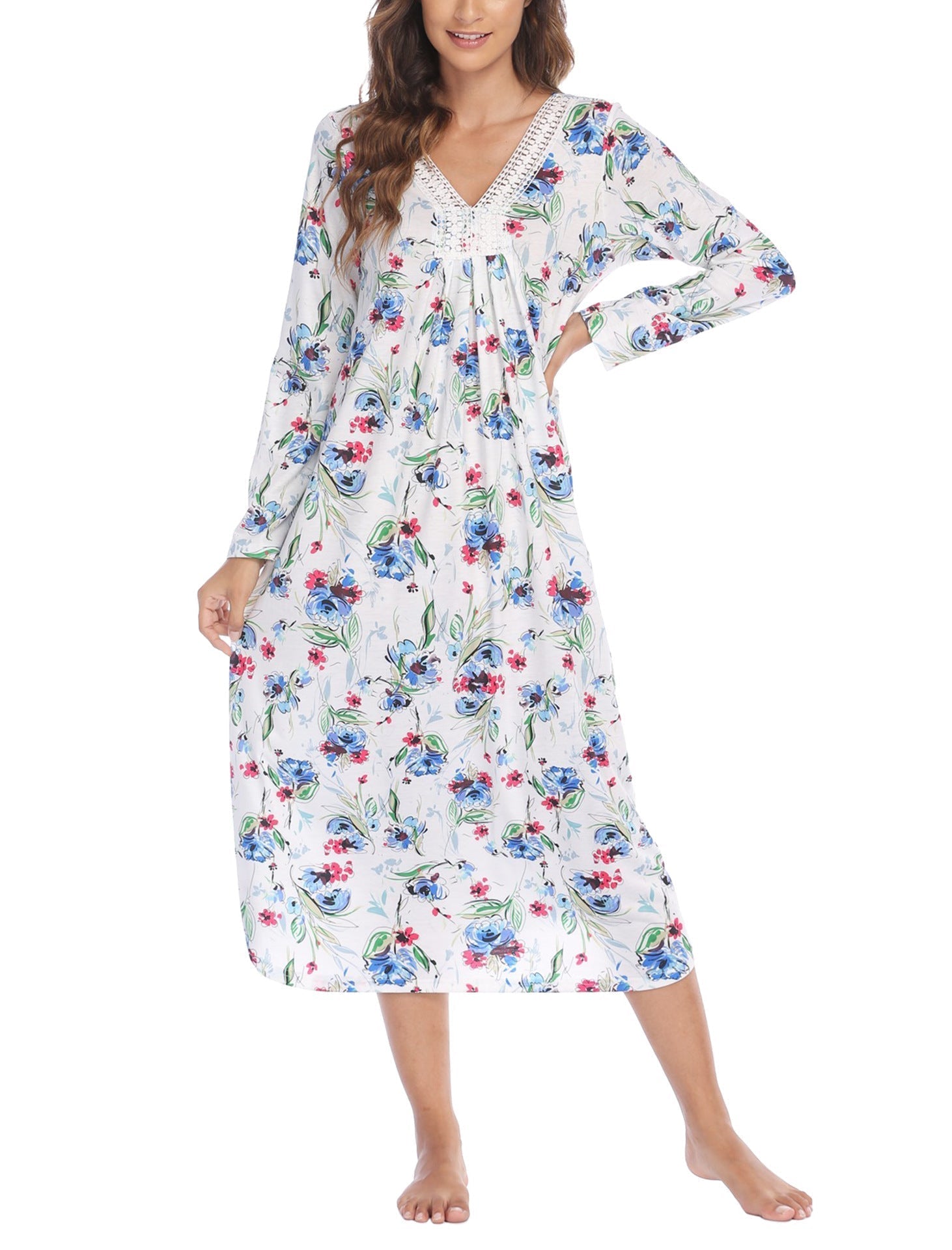 Fudus Nachthemd aus bedruckter Baumwollmischung mit Spitze