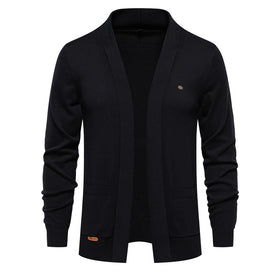 Herren angenehme Strickjacke mit offenem Kragen und praktischen Taschen Stilzeits
