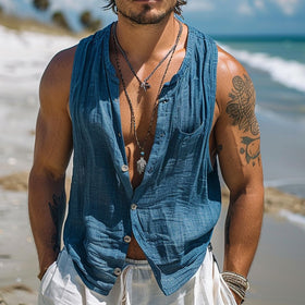 Herren Ärmelloses Hemd aus atmungsaktivem Leinen Stilzeits