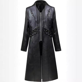 Herren asymmetrische Kunstlederjacke mit dekorativen Schnallen Stilzeits
