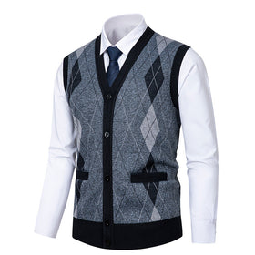 Herren edle Strickjacke mit modernem Rautenmuster Stilzeits