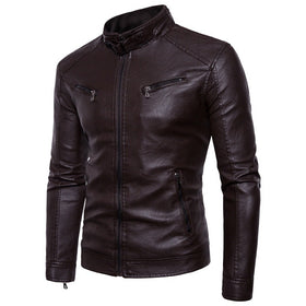 Herren elegante Kunstleder-Motorradjacke mit Stehkragen Stilzeits