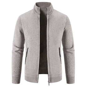 Herren elegante Strickjacke mit hohem Kragen und praktischen Reißverschlusstaschen Stilzeits