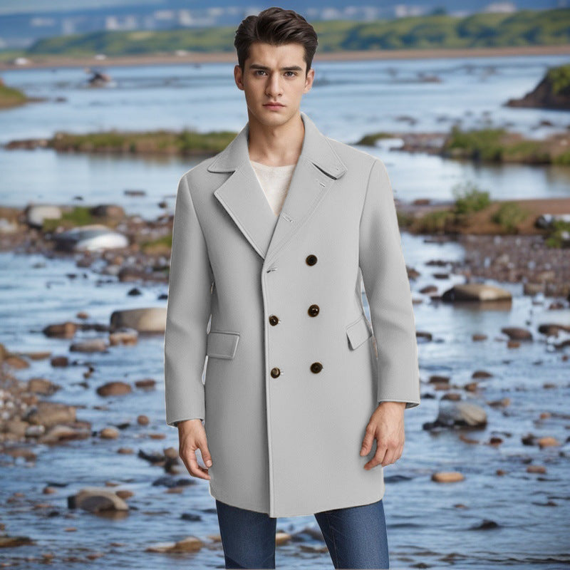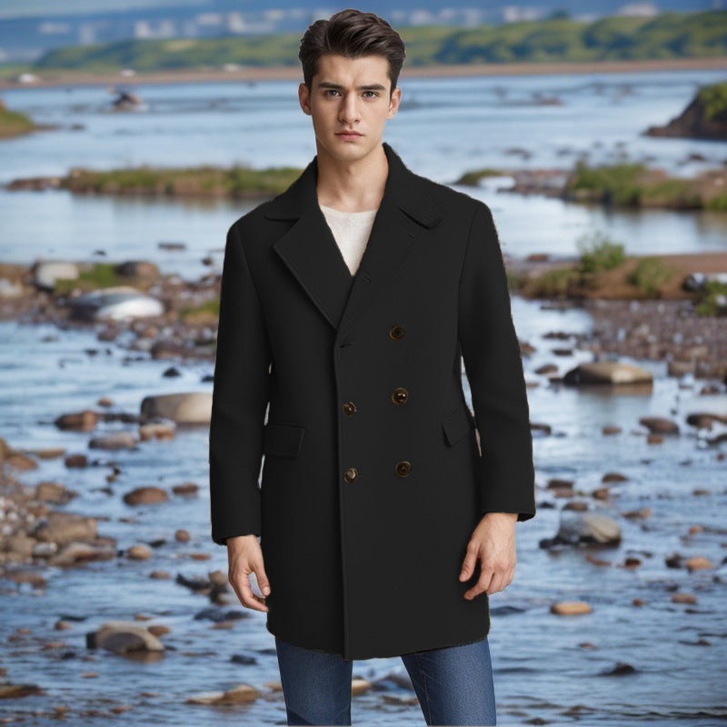 Herren eleganter Doppelt-geknöpfter Wollmantel...