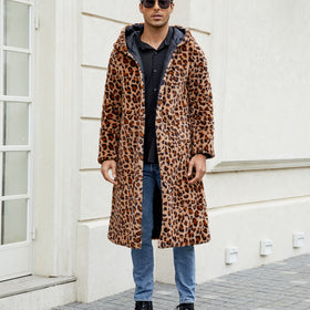 Herren Eleganter Kunstfellmantel mit Leopardenmuster Stilzeits