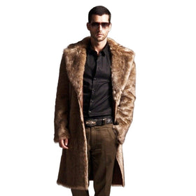 Herren Extravaganter Lammfellmantel mit voluminösem Kunstfellbesatz Stilzeits