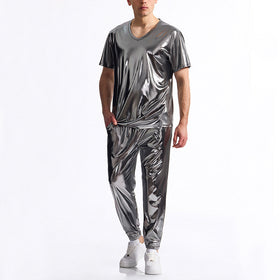 Herren glänzendes Sport-Outfit mit modernem V-Ausschnitt und elastischem Bund Stilzeits