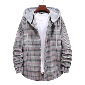 Herren Hemd mit integrierter Kapuze und modischem Karo-Design Stilzeits