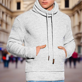 Herren Kapuzenpullover mit grobem Strickmuster und praktischen Kängurutaschen Stilzeits