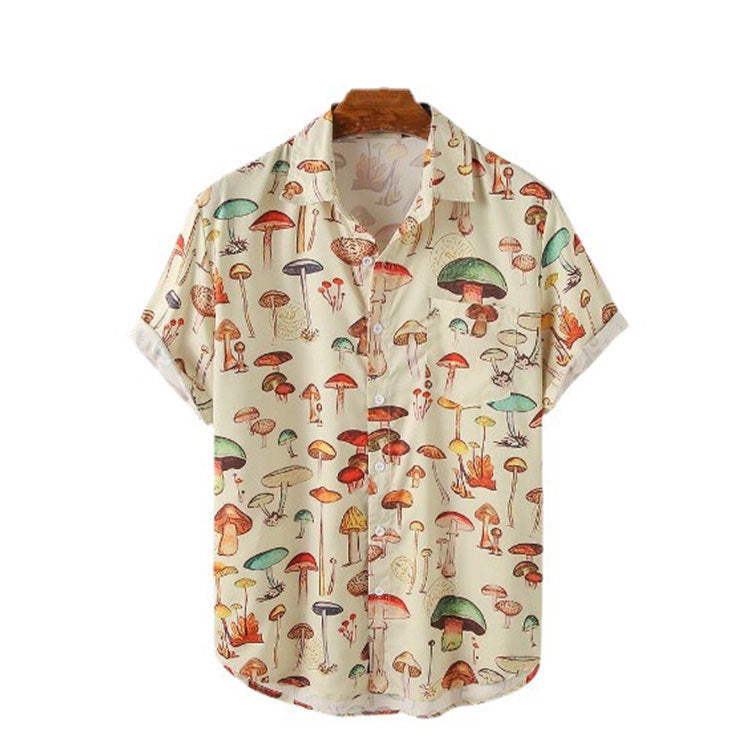 Herren Kurzarmhemd mit buntem Pilzmotiv Stilzeits
