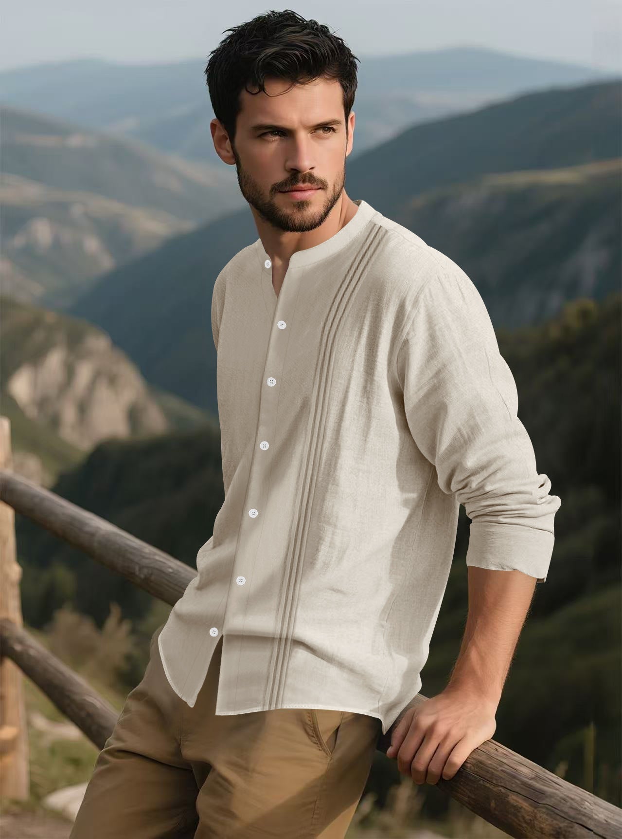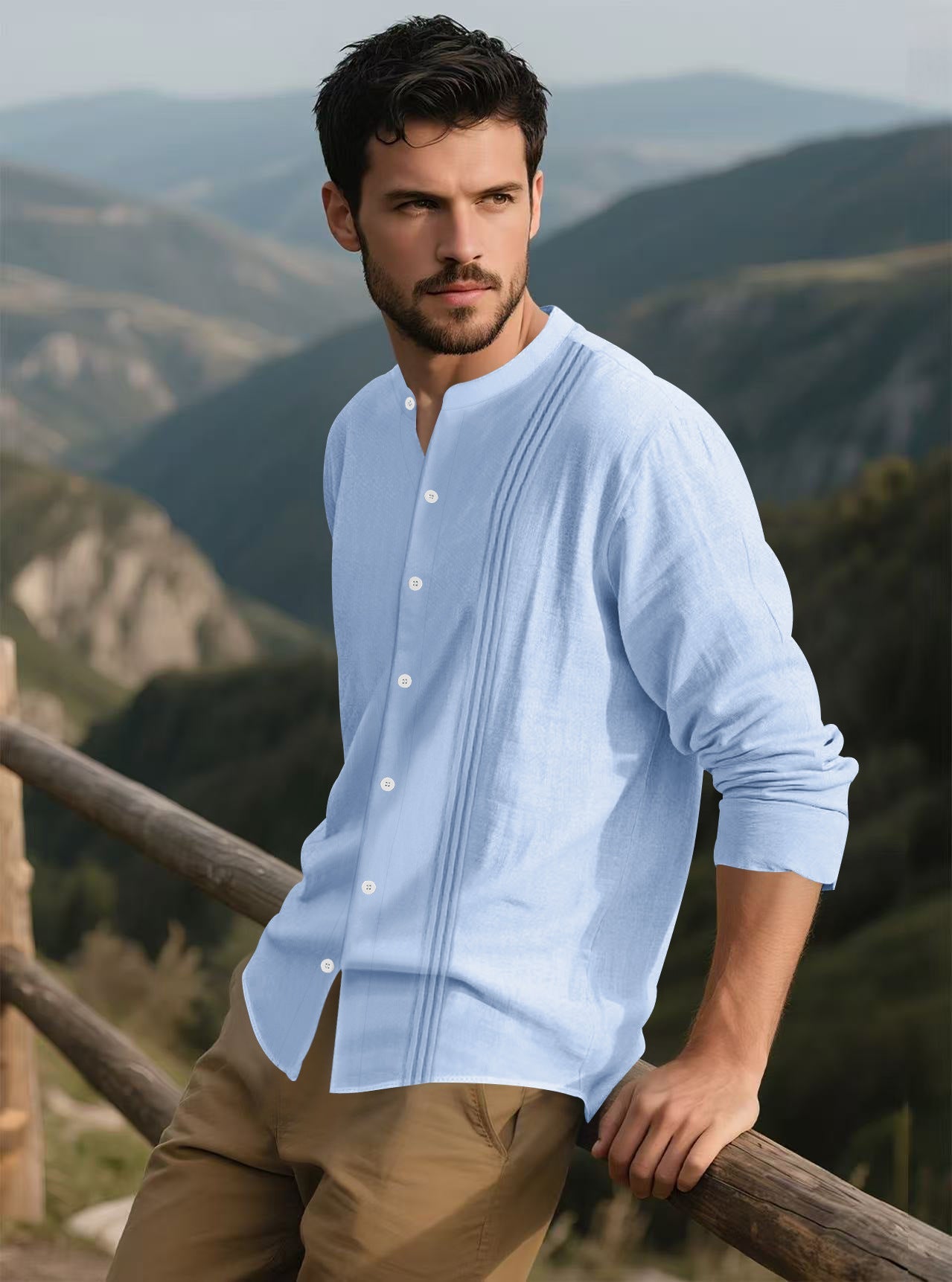 - Modischer Stehkragen: Der moderne Stehkragen verleiht dem Hemd einen einzigartigen Look und sorgt für ein selbstbewusstes Auftreten.