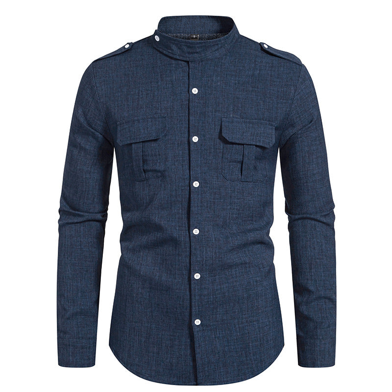 Herren langärmliges Hemd mit zwei praktischen Brusttaschen und modernem Stehkragen Stilzeits