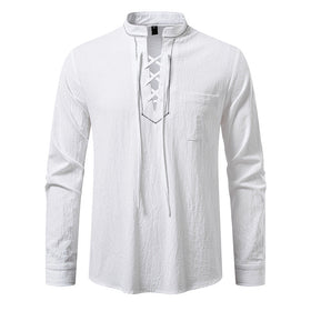 Herren Langarmshirt mit hochwertigem Stehkragen und dekorativer Schnürung Stilzeits