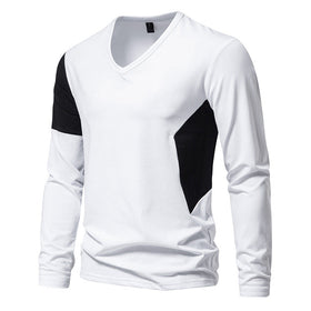 Herren Langarmshirt mit modernem V-Ausschnitt und farblich abgesetzten Ärmeln Stilzeits