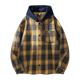 Herren lässige Hemdjacke mit gefütterter Kapuze und Karomuster Stilzeits