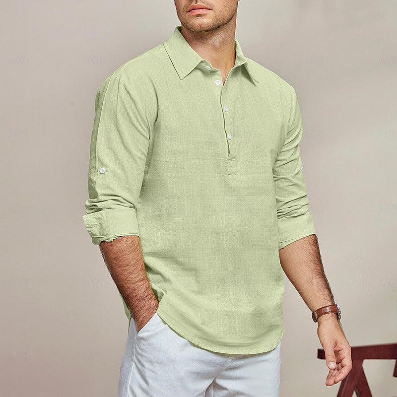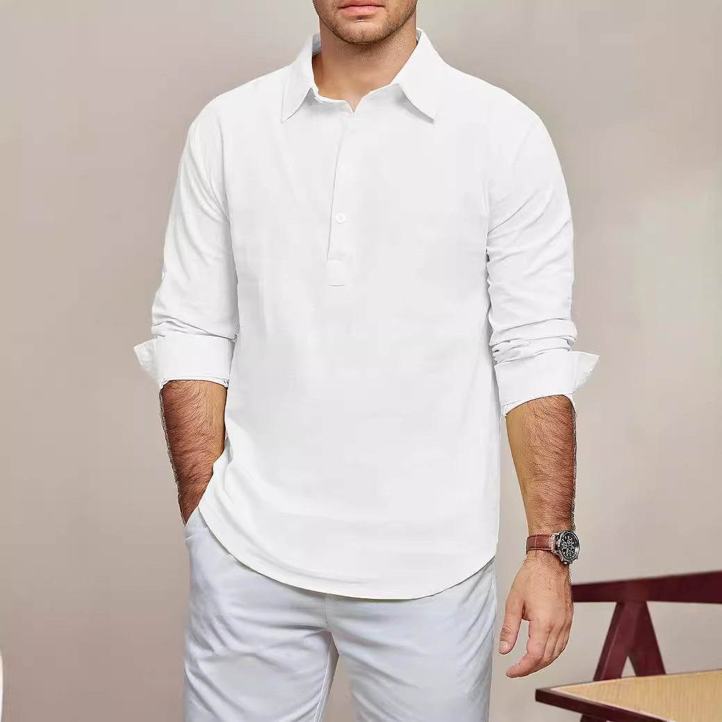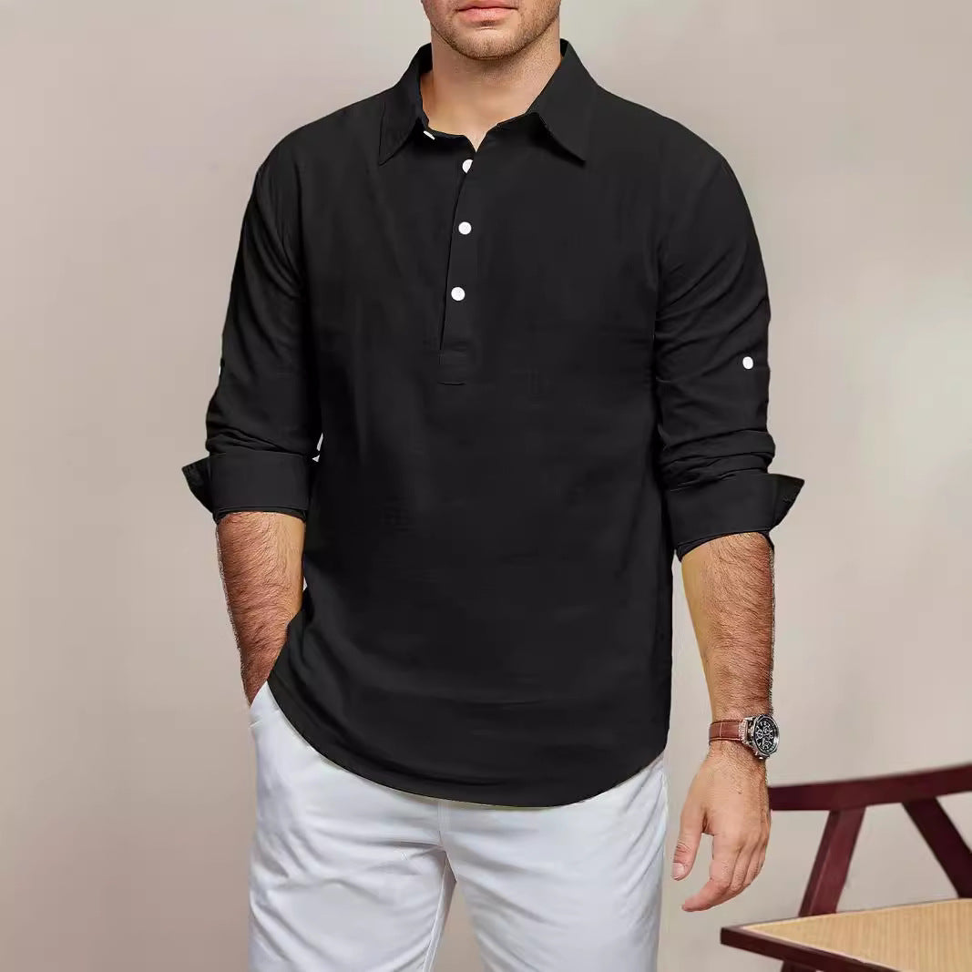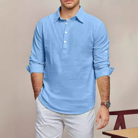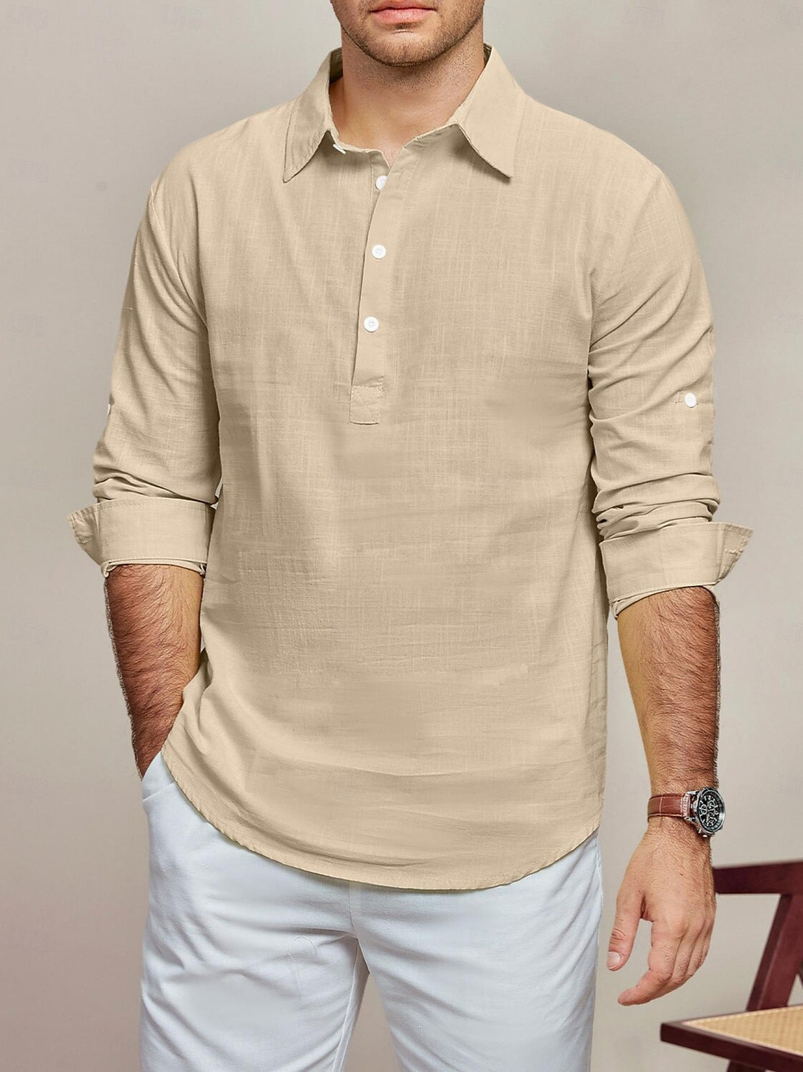 Herren lässiges Langarmhemd mit Knopfleiste und feiner Struktur Stilzeits