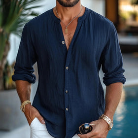 Herren leichte Langarmbluse mit Knopfleiste und bequemer Passform Stilzeits