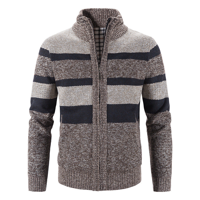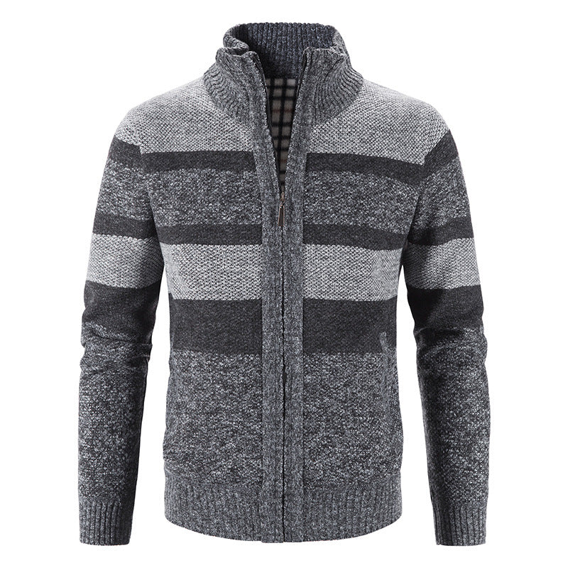 Herren modische Strickjacke mit Stehkragen und Reißverschluss Stilzeits