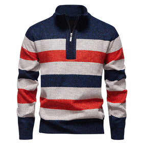 Herren modischer Strickpullover mit halbhohem Kragen und kontrastierenden Streifen Stilzeits