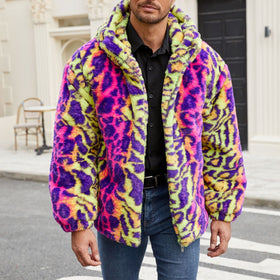 Herren Plüschjacke mit auffälligem Tierprint und Kapuze Stilzeits