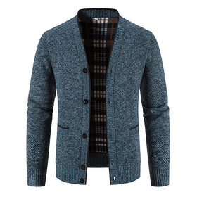 Herren Strickjacke mit eleganter Karostruktur und Knopfverschluss Stilzeits