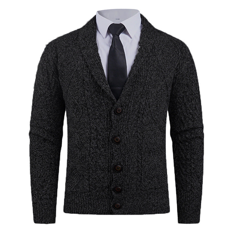 Herren Strickjacke mit markantem Zopfmuster und stilvollem Schalkragen Stilzeits